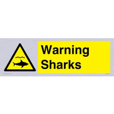 W054 : Sharks This sign is made from vinyl silver sticker 62 landscape Sign Text: Warning sharks