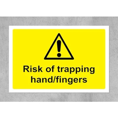 Warning sign Risk of trapping hand/fingers safety sign 1.2mm Rigid plastic 150mm x 100mm Digitally printed for extra durability Drill and screw in position or use double sided tape to mount onto suitable surface.