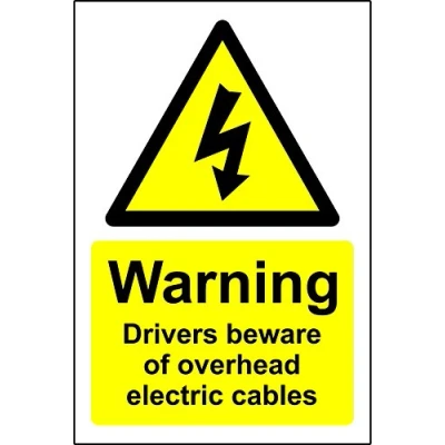 Warning signs Drivers beware of overhead electric cables 1.2mm Rigid plastic 300mm x 200mm