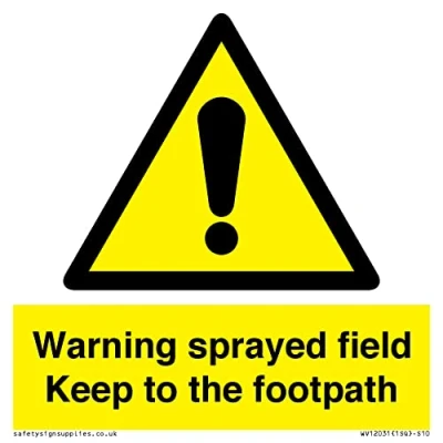 Warning sprayed field Keep to the footpath Sign 100x100mm S10
