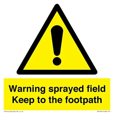 Warning sprayed field Keep to the footpath Sign 150x150mm S15
