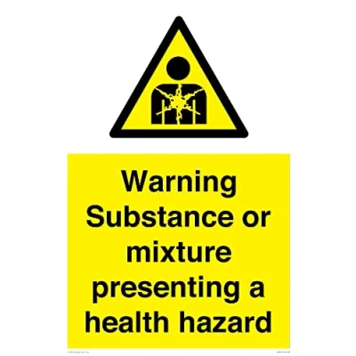 W071 : Substance or mixture presenting a health hazard This sign is made from vinyl / sticker Air Release vinyl makes it easy to stick to flat, clean surfaces without bubbles. Not for rough, plastic or dusty surfaces. A2 portrait Sign Text: Warning Substance or mixture presenting a health hazard