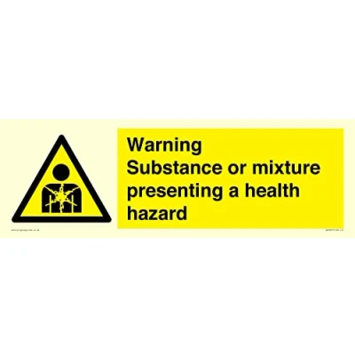 W071 : Substance or mixture presenting a health hazard This sign is made from vinyl photoluminescent sticker 41 landscape Sign Text: Warning Substance or mixture presenting a health hazard