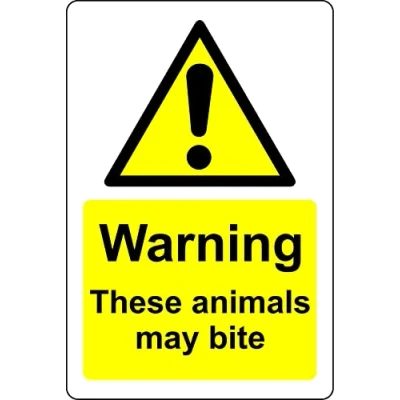 Warning these animals may bite Safety sign 1mm Plastic sign Digitally printed for extra durability Drill and screw in position or use double sided tape to mount onto suitable surface.
