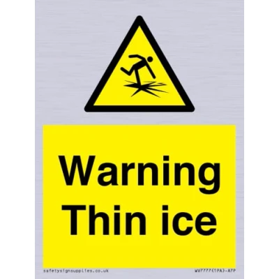 W043 : Thin ice This sign is made from vinyl silver sticker A7 portrait Sign Text: Warning Thin ice