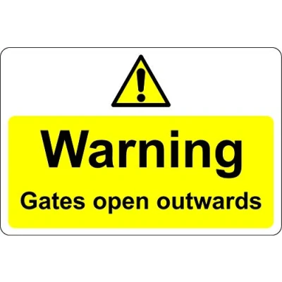 Warning this gate opens outwards Safety sign 1.2mm Rigid plastic 300mm x 200mm