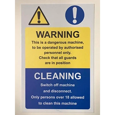 Warning this is a dangerous machine switch off the machine and disconnect Safety sign Self adhesive sticker 200mm x 150mm Digitally printed and laminated for extra durability Remove backing film and apply to dry, smooth, oil free surface., Manufacturer: KPCM Display ltd