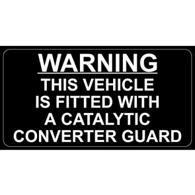 Warning this vehicle is fitted with a catalytic converter guard car sign Self adhesive sticker 150mm x 80mm Remove backing film and apply to dry, smooth, oil free surface. Digitally printed and laminated for extra durabillity