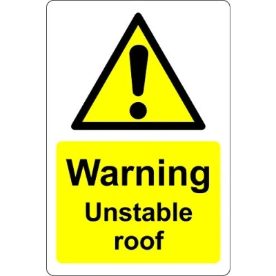 Warning unstable roof Safety sign 1.2mm Rigid plastic 200mm x 150mm