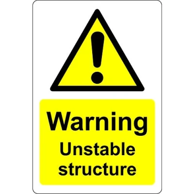 Warning unstable structure Safety sign 1.2mm Rigid plastic 300mm x 200mm