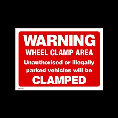 Warning Wheel Clamp Area Sticker/Self Adhesive Sign (MISC116) - No Parking, Private Property, Access, Disabled Parking, Vehicle, Warning