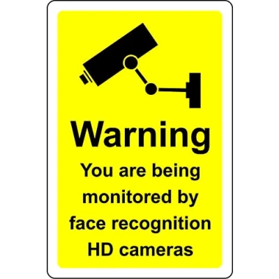 Warning you are being recorded by face recognition HD camera Safety sign Self adhesive sticker (400mm x 300mm)