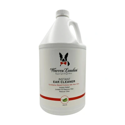 Warren London Instant Ear Cleaner - 3.8L The Warren London Instant Ear Cleaner is a gentle and effective pet ear wash for dogs, cats and puppies. It works to clean, deodorise, acidify & dries the ear to prevent odor without stinging! It has naturally soothing ingredients, and is infused with Aloe Vera and Natural Eucalyptus Extract which supplies the ear with the supplemental treatment needed to rejuvenate and provide relief. With regular usage, this solution will prevent the buildup irritants that cause infection. Avoid the costly ear infection treatment and use this product to maintain healthy pet ears. This is the essential supply for your dogs or cats ear wax removal kit. Easy Application Put 4 to 6 drops into ear canal Massage just below ear canal in a circular motion to evenly distribute the drops Wipe with cotton or tissue Repeat process and let dog shake head naturally Ingredients : Deionized water, aloe vera, SD alcohol 40-2, stearic acid, glycerine, dioctyl sodium sulfosuccinate, benzoic acid, natural eucalyptus extract