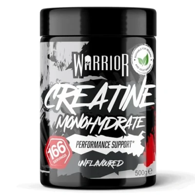Warrior Creatine Monohydrate Powder Micronised for Easy Mixing and Consumption 100 Percent Pure Proven to Improve Physical Performance Recovery, 5 g Servings (Unflavoured, 500g)