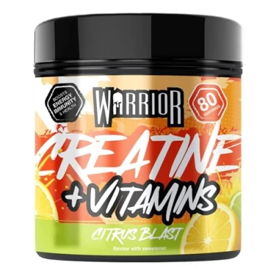 Warrior Creatine Monohydrate Powder + Vitamins 360g Performance & Recovery Pure Micronised Multivitamin Nutrition Blend Vitamin A, B12, C, D, Magnesium, Iron, Zinc 80 Servings (Citrus Blast)