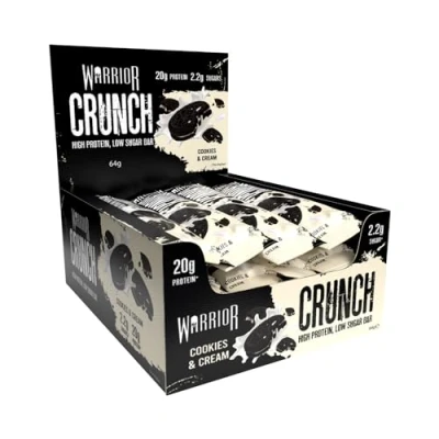HIGH PROTEIN FOR MUSCLE GROWTH & RECOVERY: Warrior Crunch Bar delivers 20g protein per bar for muscle gain, lean bulk and post workout recovery. Optimised protein snack and energy protein bar for strength, repair and endurance. Ideal high protein snacks and protein bars for gym goers, athletes and active people seeking an optimum protein dosage to build and maintain muscle. High protein bar and protein bars for muscle growth; premium protein snack for performance. LOW CARB KETO SUPPORT FOR LEAN BUILD OR WEIGHT LOSS: Less than 3g carbs and sugar to fit keto diet, low carb plans and calorie deficit goals. Use as a meal replacement protein bar or cutting snack to control hunger while protecting lean muscle. High protein low carb snack for fat loss, recomposition and clean bulk phases without excess carbs or sugar. Supports low carb snacks and keto snacks routines; use as a low sugar snack or meal replacement bar when cutting. LOW SUGAR WITH NO CRASH, SUSTAINED ENERGY: Just 1.9g sugar delivers sweet taste without spikes. Low sugar protein bars provide steady fuel for training, work and daily energy. Perfect pre workout or afternoon pick me up, supporting focus and performance. Great for your bulk, weight loss and keto snack strategy with optimum protein absorption for recovery. Low sugar snack and energy protein bar for training; protein snack that fits busy, active lifestyles. TRIPLE LAYER CHOCOLATE TASTE WITH CRUNCH: Indulgent chocolate coating, creamy layer and crispy crunch for a chocolate protein bar that actually tastes amazing. Satisfying texture, great flavour and macro friendly profile make this a guilt free sweet snack. High protein bar with real crunch to replace sugary chocolate bars while staying on plan. Chocolate protein bar and protein snack that doubles as a healthy snack to satisfy cravings without derailing macros. 12 PACK VARIETY AND ON THE GO CONVENIENCE: Box of 12 individually wrapped protein bars for gym bag, desk, travel and meal prep. Choose best selling flavours or a mixed variety pack to find your favourite. Protein bar multipack and protein bars 12 pack give everyday value, bulk buy convenience and reliable high protein snacks whenever you need them. Ideal protein bar box for home or office; protein bar multipack and variety pack for bulk buy savings.