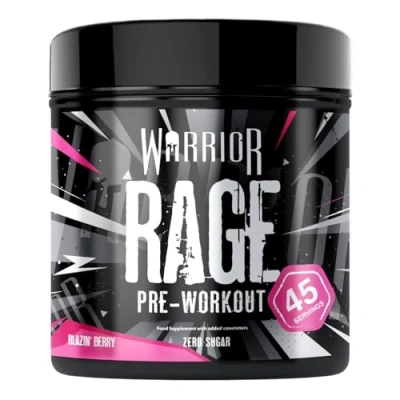 45 SERVINGS – Warrior RAGE is one of the most powerful, most effective, and most results-driven PRE WORKOUTS on the market, and now, it's even better value! A huge 45 power-packed serving in every little atomic blast of a tub CAFFEINE – Includes caffeine which has been shown to increase alertness and attention. Plus, Rage includes CREATINE which increases the abortion of Amino Acids in the body which enables protein synthesis, leading to faster muscle growth and improved strength and gains over time NEW & IMPROVED FLAVOURS - Warrior RAGE has an incredible range of flavours to choose from like Blazin’ Blue Razz & Savage Strawberry. Add one serving of 8.7g (one and a half scoops) to 250ml of cold water and shake for a tasty Pre-Workout blast! Consume before training DRIVE & FOCUS - Contains VITAMIN B6, which contributes to the reduction of tiredness and fatigue to help with MENTAL FOCUS and to keep you DRIVEN during even the most intense workouts TOUGH WORKOUTS – These are a thing of the past, power through your workouts with RAGE pre-workout powder. A pre-workout that has been designed so comprehensively to build muscle, control cortisol, enhance focus, energy, drive, pump, and endurance