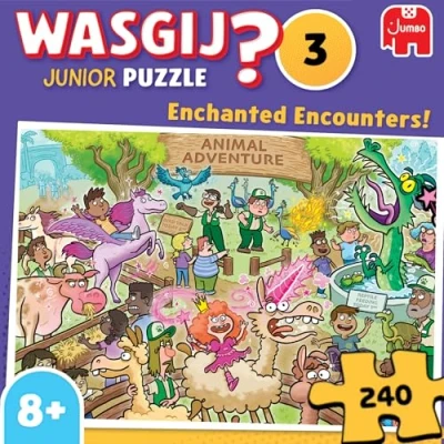 UNIQUE PUZZLE CONCEPT: Engage in a fun brainteaser with the perfect addition to your jigsaw puzzle collection, Wasgij Junior 3. Don't puzzle what you see on the box, but instead follow the clues. ANIMAL ADVENTURE ANTICS: Families enjoy furry and feathered friends but a little princess’s wand is causing unexpected enchantments. Use the clues to imagine the scene! KIDS PUZZLE FUN: Wasgij tests your imagination and problem solving skills to make you think outside the box. The perfect gift for young puzzle enthusiasts who want to take puzzling to the next level. PUZZLE WITH THE PLANET IN MIND: The 240pc jigsaw puzzle is made from sustainable and durable 100% recycled board. The precision die-cutting ensures every jigsaw piece maintains its original shape. THE WONDER OF WASGIJ: Take on the challenge of Wasgij. Instead of following the image shown on the box, you must use your imagination and clues provided to work out the picture that you are puzzling. For girls & boys age 5 years +, Manufacturer: Jumbo Group