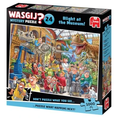 UNIQUE JIGSAW PUZZLE CONCEPT: Engage in a fun brainteaser with the optimum addition to your jigsaw puzzle collection, Wasgij Mystery 24; don't puzzle what you see, but instead what will happen next BRILLIANT BLIGHT AT THE MUSEUM: The artwork for Wasgij Mystery Puzzle 24, Blight at the Museum, is beautifully illustrated by Paul Gibbs with a stunning and surprising scene full of colour and humour CHALLENGING AND FUN: Wasgij tests your imagination and problem solving skills to make you think outside the box; the optimum gift for puzzle enthusiasts who want to take puzzling to the next level PUZZLE WITH THE PLANET IN MIND: The 1000pc jigsaw puzzle is made from sustainable and durable 100% recycled board; the precision die-cutting ensures every jigsaw piece maintains its original shape THE WONDER OF WASGIJ: Take on the challenge of Wasgij; instead of following the image shown on the box, you must use your imagination and clues provided to work out the picture that you are puzzling, Manufacturer: Jumbo