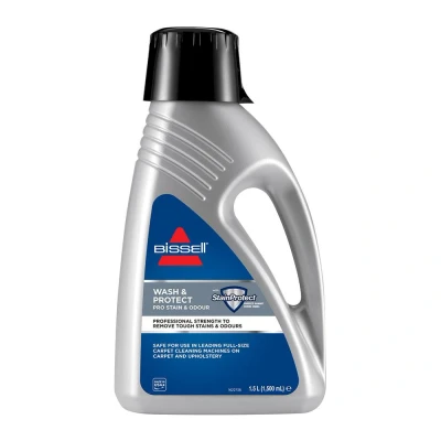 JoybuyThe BISSELL Wash&Protect Pro Carpet Cleaning Solution (1.5L, 1089N) is a professional-grade, concentrated formula for upright carpet washers that deep cleans carpets, removes tough stains and pet odours, and features StainProtect technology to help prevent future staining. Suitable for all leading upright carpet washers.