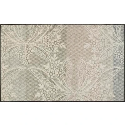 Wash+Dry Floral Lace Doormat, 75 x 120 cm, Washable for Indoor and Outdoor Use, Grey
