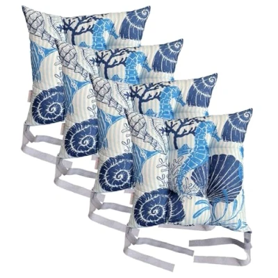Washable Chair Cushion for Dining Chairs 36 x 36cm Soft Seat Pads with Ties Comfortable Cushions Garden Indoor Outdoor Hollow Conjugated Filling [Design 7, Set of 4]