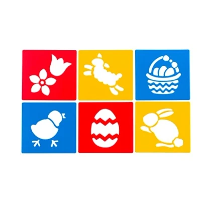 EASTER STENCILS | Set of 6 Easter themed plastic washable stencils CONTENTS | Pack includes: Lamb, flowers, chick, egg, rabbit, basket. WASHABLE | Ideal for use with paints, crayons, pencils and felt tip pens. Made from sturdy plastic, easily washable for use again and again. KIDS | These brightly coloured plastic stencils are designed for use by children. CREATIVE | They are great for developing creativity and hand to eye co-ordination skills. SIZE | Stencils measure: 15cm x 14cm, Manufacturer: Craftplay