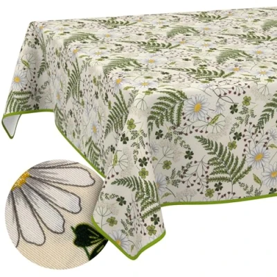 Washable Tablecloth Lotus Effect Easy Care Cotton Polyester Dirt Repellent Outdoor Garden Chamomile Leaves 100 x 140 cm with Piping Ribbon