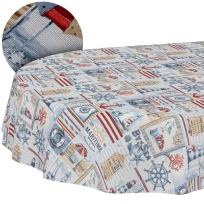 Washable Tablecloth Lotus Effect Easy Care Cotton Polyester Dirt Repellent Outdoor Garden Maritime Oval 180 x 140 cm