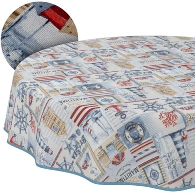 Maritime tablecloth with loving details: A summery eye-catcher all around: this maritime tablecloth makes you want to see the sea with typical motifs such as anchor, steering wheel and shells. Fits perfectly with maritime environments indoors and outdoors. Washable tablecloth: ideal for everyday use, as it is easy to clean with acrylic coating. This washable tablecloth is simply cleaned with a damp cloth, stays beautiful for a long time and retains its fresh look - like the sea itself. Cotton fabric with textile handle: with its high-quality blend of 50% cotton and 50% polyester, the tablecloth has a pleasantly soft feel and the natural look of fabric - a tablecloth with cotton and full of ease of care. Waterproof and protective: the water-repellent tablecloth Maritime reliably protects sensitive table tops and surfaces from stains, scratches, moisture and signs of wear. This maritime tablecloth will keep tables beautiful for a long time. Versatile maritime tablecloth: as a tablecloth in blue with a typical maritime look, this product impresses both at the dining table and on the balcony, terrace and in the garden. Washable tablecloth available in many sizes and shapes.