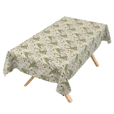 Washable Tablecloth, Lotus Effect, Easy Care, Made of Cotton, Polyester, Dirt Repellent, Outdoor Garden Chamomile Leaves, 180 x 140 cm