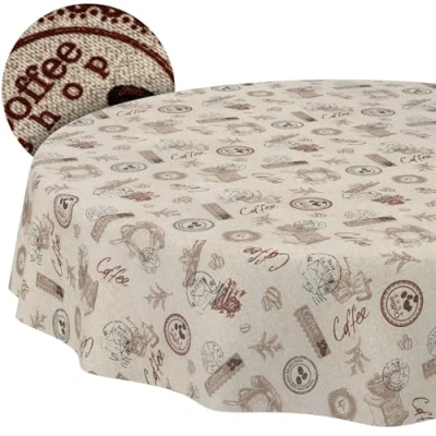 Coffee tablecloth with beige background with coffee cups, subtle dark red accents and the flair of the wide world. Ideal tablecloth for the coffee table, the coffee table on the balcony and anyone who loves coffee. Extremely easy to clean: high-quality blend of 50% cotton and polyester makes the tablecloth washable. Simply wipe away coffee stains and other mishaps with a damp cloth thanks to the soft acrylic coating. Wonderful textile feel: the coffee tablecloth is water-repellent and still has a soft textile drape. Ideal for stylish coffee lovers who appreciate ease of care and elegance. Also suitable as an outdoor tablecloth. Surface protection: the tablecloth with coffee motif protects valuable surfaces not only from permanent stains and dirt, but also from mechanical scratches. The perfect tablecloth for outdoor coffee tables on the patio. Many sizes available: as a coffee tablecloth in round, oval or square in many sizes. Also matches the table in your favourite place. Washable tablecloth can also be configured with coordinated piping tape.