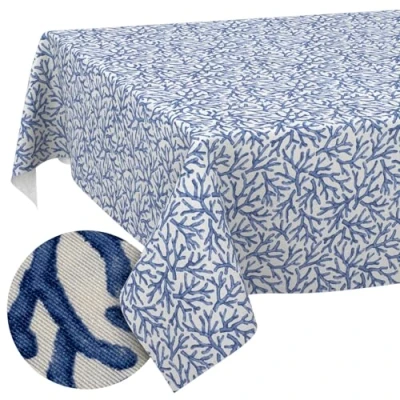 Maritime look tablecloth: delicate coral branches in sea blue on a white background create a maritime atmosphere at the table. A washable tablecloth that brings dynamism and freshness to the table, just like on holiday. Washable tablecloth: the blend of 50% cotton and polyester makes the tablecloth in blue easy to clean and an all-rounder at the table. Liquids and dirt simply bead off and are simply wiped away. SOFT FABRIC FEEL: This modern blended fabric tablecloth has an additional comfortable acrylic coating. The tablecloth is water-repellent, yet has a textile fall and does not crinkle. STYLISH SURFACE PROTECTION: Double effective as table protector, because this maritime look tablecloth keeps scratches and mechanical stress away from the valuable table surface. Delicate wooden tables stay beautiful even longer. Now many sizes & shapes: every day becomes a holiday day by the sea with this maritime look tablecloth. It is available as a tablecloth in round, oval and square shape as well as in many different sizes to match your favourite place.