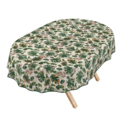 Washable Tablecloth, Lotus Effect, Easy Care, Made of Cotton, Polyester, Dirt Repellent, Outdoor, Garden Jungle, Oval, 180 x 140 cm, with Piping Band