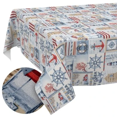 Maritime tablecloth with loving details: A summery eye-catcher all around: this maritime tablecloth makes you want to see the sea with typical motifs such as anchor, steering wheel and shells. Fits perfectly with maritime environments indoors and outdoors. Washable tablecloth: ideal for everyday use, as it is easy to clean with acrylic coating. This washable tablecloth is simply cleaned with a damp cloth, stays beautiful for a long time and retains its fresh look - like the sea itself. Cotton fabric with textile handle: with its high-quality blend of 50% cotton and 50% polyester, the tablecloth has a pleasantly soft feel and the natural look of fabric - a tablecloth with cotton and full of ease of care. Waterproof and protective: the water-repellent tablecloth Maritime reliably protects sensitive table tops and surfaces from stains, scratches, moisture and signs of wear. This maritime tablecloth will keep tables beautiful for a long time. Versatile maritime tablecloth: as a tablecloth in blue with a typical maritime look, this product impresses both at the dining table and on the balcony, terrace and in the garden. Washable tablecloth available in many sizes and shapes.