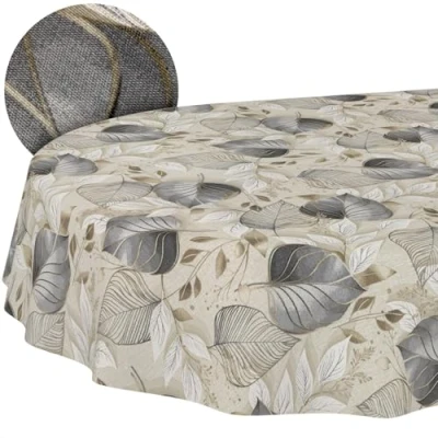 Elegant tablecloth in grey: this tablecloth impresses with flowing shapes in exclusive palladium grey, gold accents and white branches. Tablecloth for modern interior designs that want a textile look. EASY CARE FOR EVERYDAY - Acrylic coating makes the grey tablecloth washable. It is ideal for stylish dinners, but also everyday moments with the family when a sophisticated ambience is desired. Textile feel: the blended fabric of 50% cotton and 50% polyester gives the elegant tablecloth in grey soft drape at the table and a completely textile feel and look. No stiff plastic feel or crackle. Surface Protection: Because the tablecloth is waterproof and particularly robust, it protects surfaces not only from dirt, but also from mechanical scratches. Your precious wooden table will stay beautiful as new for longer. Versatile tablecloths in grey: so that the palladium grey tablecloth fits any place, it is available as a tablecloth in round, oval and square, each in many different sizes. Now available on request with coordinated piping edge.