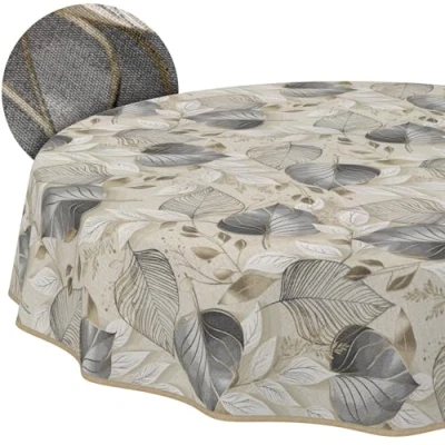 Elegant tablecloth in grey: this tablecloth impresses with flowing shapes in exclusive palladium grey, gold accents and white branches. Tablecloth for modern interior designs that want a textile look. EASY CARE FOR EVERYDAY - Acrylic coating makes the grey tablecloth washable. It is ideal for stylish dinners, but also everyday moments with the family when a sophisticated ambience is desired. Textile feel: the blended fabric of 50% cotton and 50% polyester gives the elegant tablecloth in grey soft drape at the table and a completely textile feel and look. No stiff plastic feel or crackle. Surface Protection: Because the tablecloth is waterproof and particularly robust, it protects surfaces not only from dirt, but also from mechanical scratches. Your precious wooden table will stay beautiful as new for longer. Versatile tablecloths in grey: so that the palladium grey tablecloth fits any place, it is available as a tablecloth in round, oval and square, each in many different sizes. Now with coordinated piping edge.