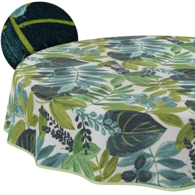 Tropical tablecloth in green: dense foliage in different shades of green gives this washable tablecloth spring-summer flair. With its white base colour, the tablecloth creates an airy ambience. Washable tablecloth for everyday use: its acrylic coated surface makes this wipe-clean tablecloth particularly easy to clean. Simply wipe off dirt with a damp cloth, the waterproof tablecloth is beautiful as new. SOFT TOUCH OF FABRIC: High quality blended fabric with 50% cotton and 50% polyester provides textile feel and stylish soft drape. Easy-care tablecloth without stiff plastic appearance, ideal for elegant home designs. WATER RESISTANT & PROTECTIVE - Spills simply roll off because the tablecloth is water resistant. Sensitive tabletops protect them from dirt, scratches and signs of wear, also as a tablecloth for outdoors. VERSATILE SIZES & SHAPES - This wipe clean tablecloth comes in round, oval or rectangular shape, ideal for dining room tables or balcony & garden. Ideal tablecloth for fresh living ideas that make you want green.
