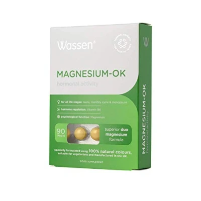 Wassen Magnesium OK 90 Tablets Supplements for Women Hormone Balance PMS Menopause Daily 3 Month Supply