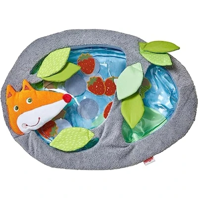 A water filled sensory play and play mat to awaken babies. Cop, flac, it's bath day in the forest! With this cute water play mat, babies can discover what floats: mushrooms, nuts and wild strawberries! They are easy to move with your hand while lying on your stomach. It is a fun occupation that develops baby's motor skills. The water-filled mat is covered with a soft fabric cover on which babies will lie comfortably. SENSORY DEVELOPMENT - The water play mat provides a unique sensory experience for babies, who can experience different textures and sensations by touching water and bubbles. Muscle strengthening: strengthens muscles and stimulates motor skills when on the stomach Safety: The water play mats are equipped with inflatable edges to keep the water in and prevent water spills. In addition, the water play mats can be easily cleaned and disinfected., Manufacturer: HABA Sales GmbH & Co. KG