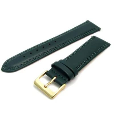 WatchWatchWatch Green Double Stitched Men's Leather Watch Strap 18mm with Gold Buckle C021