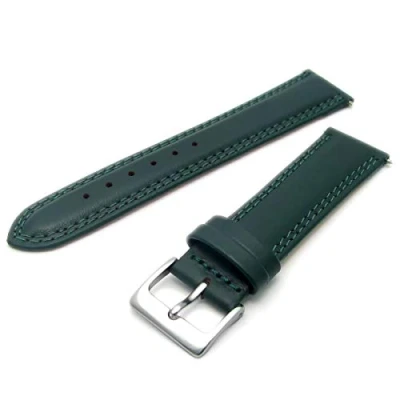 WatchWatchWatch Green Double Stitched Men's Leather Watch Strap 22mm with Silver Buckle C021