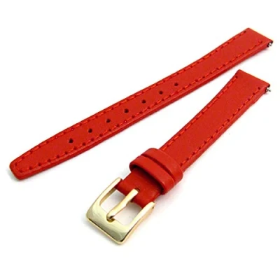 WatchWatchWatch Red Smooth Stitched Ladies' Leather Watch Strap 14mm Gold Buckle C088