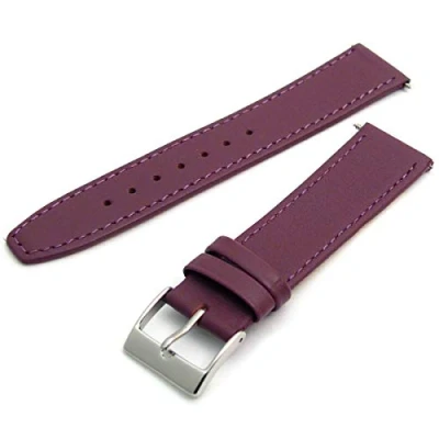 Replacement watch strap in smooth grain leather with contrast stitching Colour: Purple with chrome (silver colour) buckle 20mm Wide where it fixes to your watch Regular men's length Supplied complete with spring bars