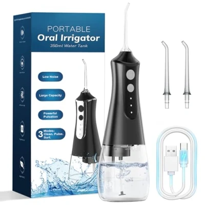 Water Flosser for Teeth Cordless & Oral Irrigator Dental Flosser, 350ML Portable flossers Care Home Use and Travel, 3 Modes, Black