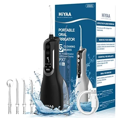 [DEEP CLEANING TEETH WITH NO PAIN] Water flosser for teeth equipped with a water pressure stabilization system, allowing precise control of the high-pressure water pulse to remove up to 99.99% the food residue and dental plaque with low noise. 10X faster & easier than string floss, and will not hurt your gum tissue with prolonged use. And Sensitive care mode, tailored for people with sensitive gums, is Effective Against Bleeding Gums. [MULTIPLE CLEANING MODES FOR YOUR CHOICE] Water Flossers for Teeth Cordless with 5 clean modes (Pulse, Normal, Soft, Sensitive, BurstFire). Memory Function helps to remain the water pressure in former use. Gentle for teeth braces, bridge care, and orthodontic implants. It is for all family members and different needs. [INNOVATIVE DESIGN & EFFICIENT] Rechargeable oral irrigator with powerful lithium battery is able to last for 50 days once fully charged.The screen make it easy to read the current flossing mode and the remain power. Innovative water tube with stainless steel Gravity Ball keep flossing teeth in any angle. Whether for a business trip, daily use at home or gifts, it’s your ideal choice. [GREAT FOR TRAVEL AND GIFT] With low electric consumption, compact and lightweight, this Cordless water pick is portable and perfect for travel or home use. Stores easily in a drawer, suitcase or wardrobe travel kit. It is a great gift for you and your care about!