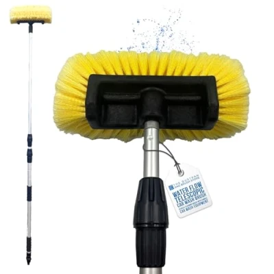 Telescopic Brush - This car cleaning brush features a 266 cm telescopic handle, ensuring an extended reach for efficient car wash pole. This car cleaning tool is perfect for accessing hard-to-reach areas, making it a must-have in your car washing kit. Curved Bristles Design - The car cleaning brush is designed with curved bristles for comprehensive cleaning. This car cleaning kit brush reaches all angles, making it ideal as car brush for washing the car and ensuring thorough car cleaning every time. Compatible with Long Handles - This car washing brush is compatible with car wash brush long handle setups. It transforms your car cleaning brush into a telescopic brush handle, making it perfect for car washing tall vehicles like trucks and vans. Water Flow Efficient - The water fed car wash brush design enhances water flow for optimal cleaning. Use this car washing brush with a hose brush attachment for efficient car leaning, saving water and time. Versatile Cleaning Tool - Our car wash brush is a versatile addition to any car washing kit. It serves as a window brush, truck wash brush, and extendable brush for cleaning roof, making it essential for comprehensive car cleaning kit.