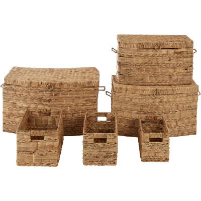 JoybuyThis set of six water hyacinth storage baskets and trunks offers sustainable, durable, and stylish organization for any home. With iron wire frames, easy-carry handles, and a rustic design, it combines functionality with elegant decor.