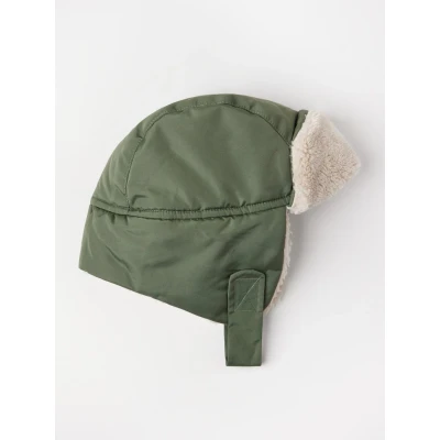 LindexWater repellent hat with soft pile lining, fold-up front, and velcro closure under the chin.