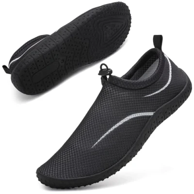 Water Shoes Beach Swim Swimming Aqua Socks Barefoot for Sea Pool Quick Dry Lightweight Breathable Adjustble Surf Dive Women Men(Drawstring Line Black 38 EU/5 UK)
